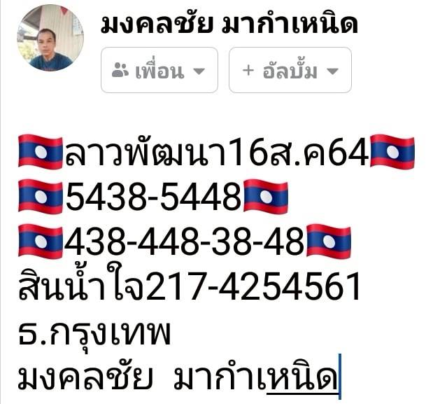 แนวทางหวยลาว 16 8 64 Thaihuay Line Today